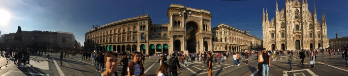 Bildēs redzami dažādi mākslas un kultūras pieminekļi Milānā. Kā arī skolēni pie A. Greppi skolas fasādes.